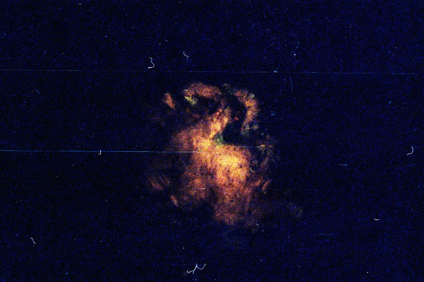The following three images belong to a series of paintings intended to depict imagined forces of creation. The colours are provided by pigments ejected from smoke